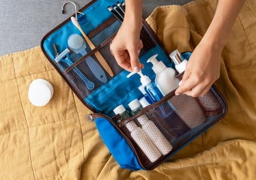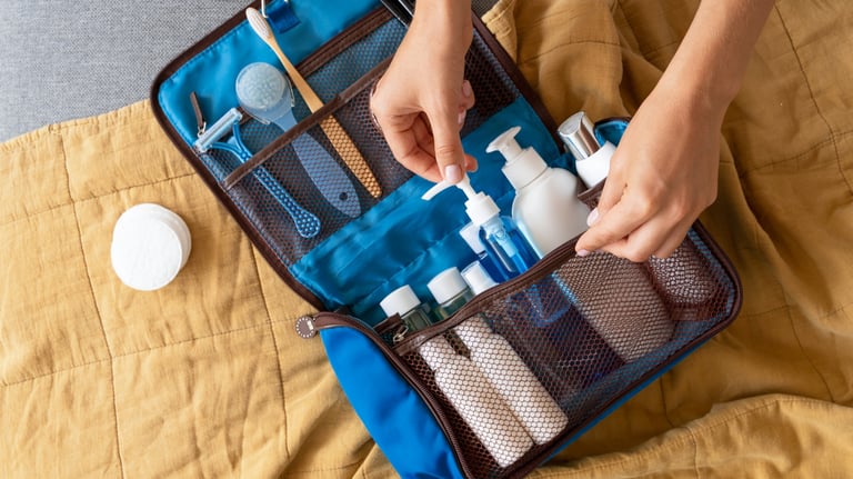 No descuides la higiene y el cuidado en tu viaje, estuches de jabón, cepillos de dientes y kit de viaje.