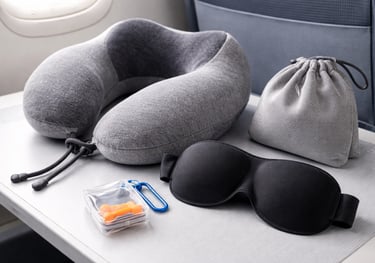 Tu comodidad durante los trayectos. Tapones de oídos, almohadas, antifases.