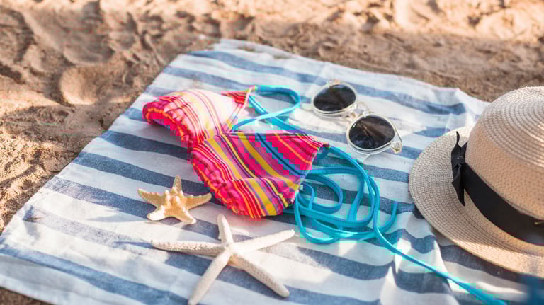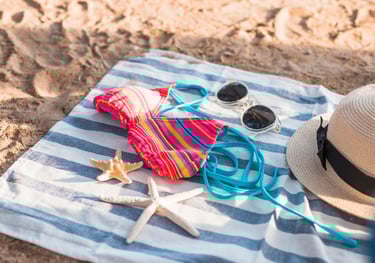 Para disfrutar al máximo, accesorios prácticos como bolsos impermeables, toallas compactas, sandalias cómodas y organizadores de playa.